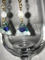 ラピスラズリとラリマーのさざれを埋め込んだピアスです。
